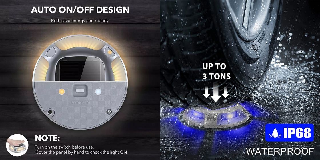 Tempered glass solar road stud PI68 led road mark driveway warning